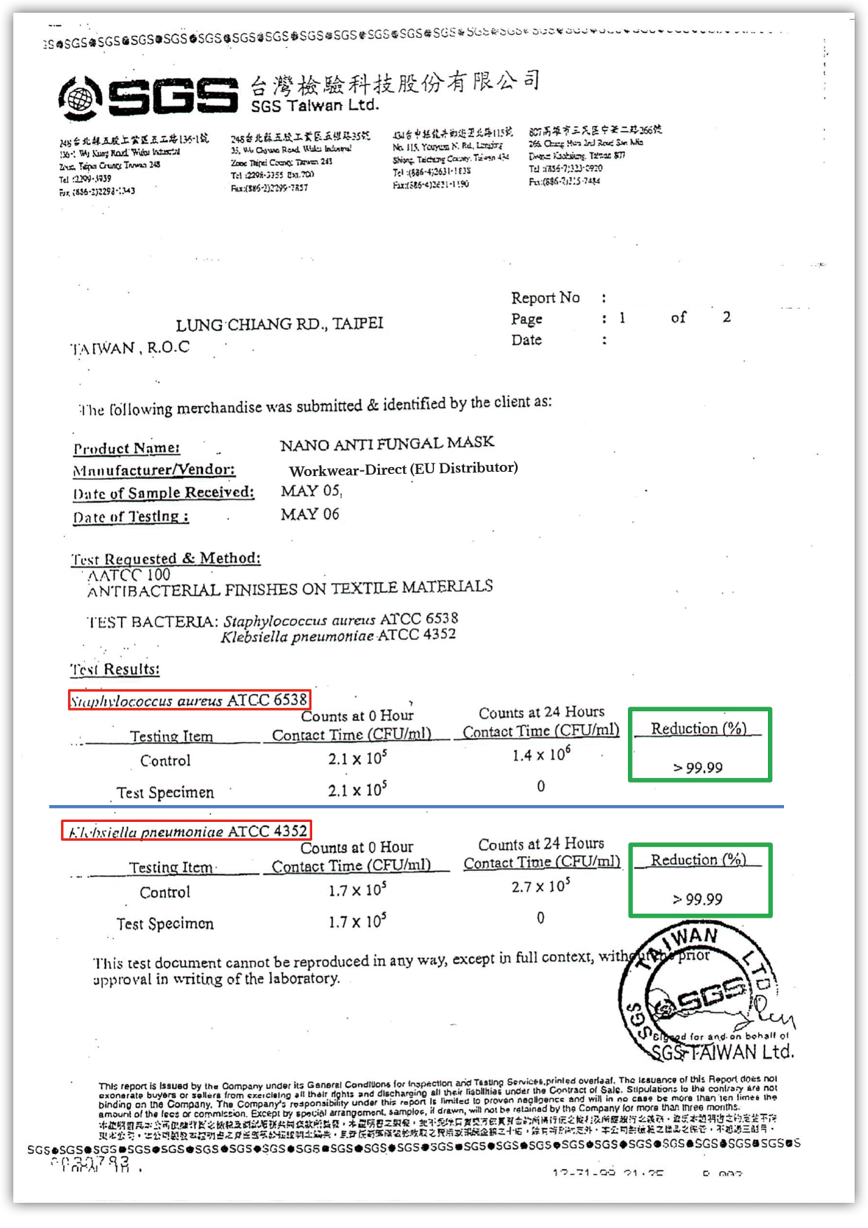 Their lab tests showed over 99.9% of bacteria killed on contact with the nano mask even after 50 washes