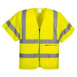 Half Sleeve Zip Vest for additional high visibility coverage, while keeping the wearer cool. It uses lightweight fabric and HiVisTex reflective tape. With front zip fastening and a zipped tablet pocket, which can fit tablets up to the size of 10.5" without a case.
